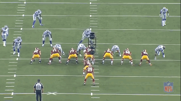 On zone plays, you want back-side pursuit, but usually tackles are not doing this. That is big Trent Williams who just wants to ride Crawford out of the play, but relentless effort comes up with the ball carrier yet again. This is common place for Crawford, but you don’t see this much from most DTs when you watch film.
