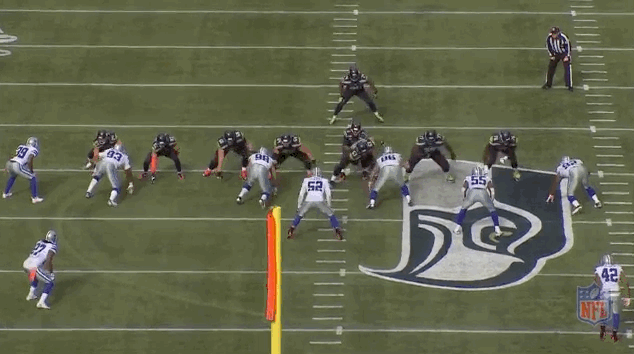 Here, I said 10 plays, but here is a bonus, #11 is a pressure that might have helped seal the Seahawks win. Notice that on passing downs, they don’t go with Melton or Crawford. They go with both rushing from inside, because one is going to get 1-on-1 and he will win. Here, giant James Carpenter gets shoved back by Crawford and Wilson throws a duck as his pocket collapses.