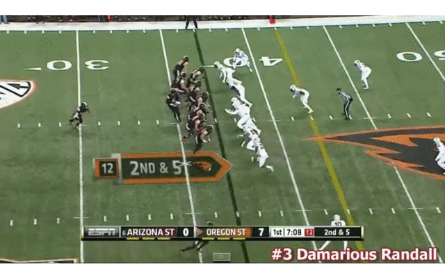With that in mind, here is the case of Damarious Randall from Arizona State. He is a Juco-transfer, who has played at Arizona State for 2 seasons. During those 2 years, he racked up a number of splash plays – 15 tackles for loss, 6 interceptions, and over 175 tackles. Those numbers are quite impressive so I looked closely at his work against Stanford, Notre Dame, and Oregon State to see what there was to see.