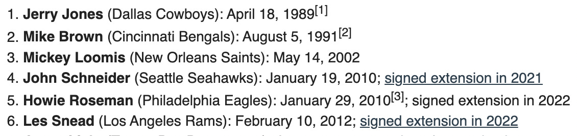 Jerry Jones installed himself in 1989. Mike Brown, son of Paul Brown, installed himself in 1991. Jones is now 82 years old and Brown is 89. Jones has Will McClay and Brown has Duke Tobin, so they definitely have the ability to gain assistance when required, but only two organizations have the inability to fire the GM when things go bad – like 2024 has.