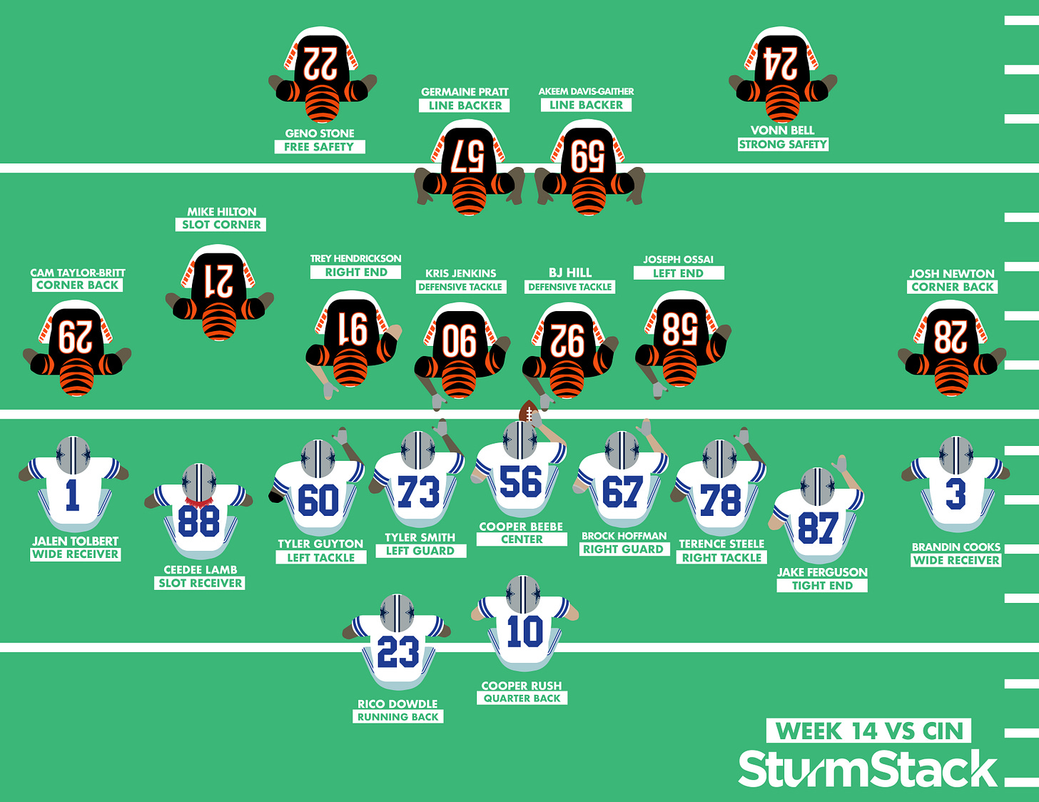 The final game on the Week 14 docket goes tonight at 7:15 at AT&T Stadium in Arlington and ESPN is going to spruce things up with their Simpsons-themed telecast that I believe you can see on Disney Plus. However, I assume the target market audience for a Simpsons broadcast is probably not the target audience for SturmStack, so I will likely not spend much more virtual ink on that. If that is your thing, please do enjoy.