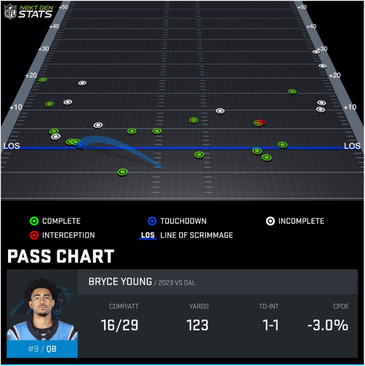 As I stated in the pre-game piece, I still have high hopes for the future of Bryce Young, but when we talk about franchises harming their own assets by setting them up to fail, I don’t think we need to look much further than this situation. The pure audacity to trade five pieces for a rookie QB when you have nothing for him to play with and literally just traded Christian McCaffrey and DJ Moore away (and were already bad with them) is malpractice of the highest order. I submit that Sunday is a greater indicator of a poor franchise than a poor franchise QB.
