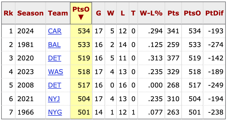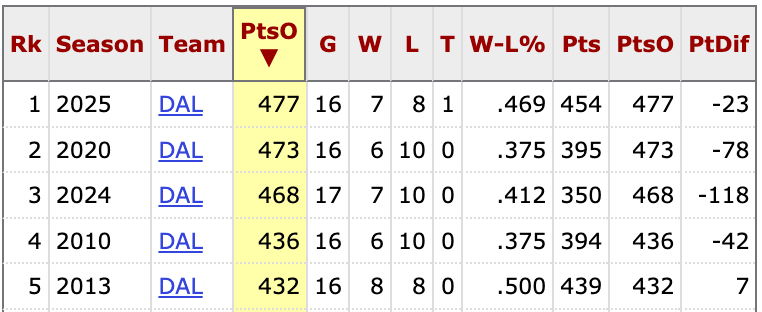 Well, evidently, they can’t do worse. In 66 years of Cowboys football, we have officially found one with the very worst ability to concede points — 477 of them through 16 games is as bad as we have ever seen.