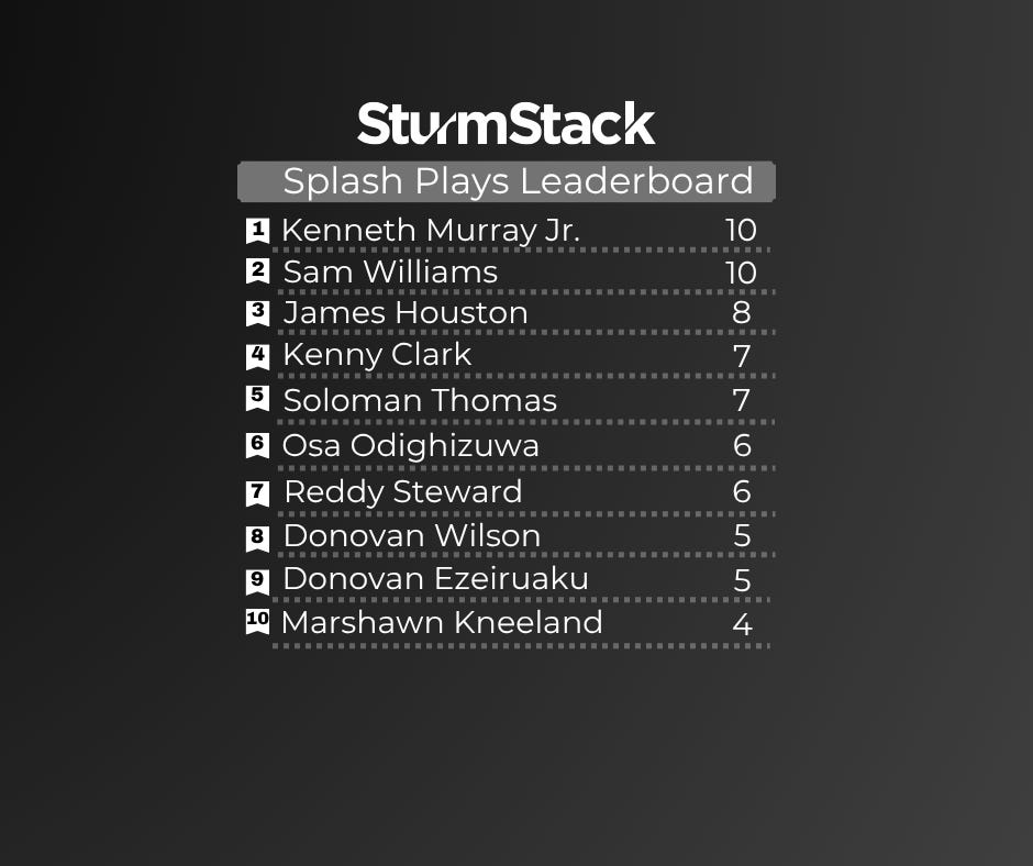 It was a light day for splash plays in Carolina. There were a few, but obviously, the defense was unable to make any plays on the proper side of the line of scrimmage.