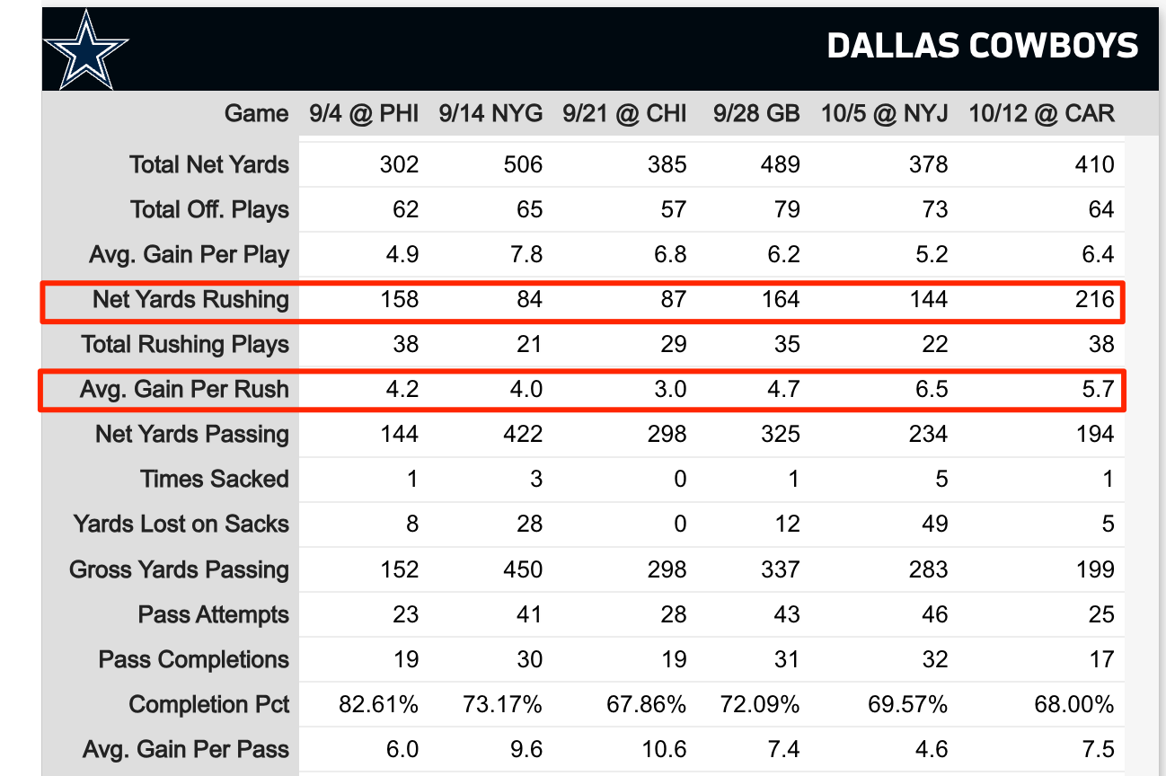 After three weeks, we started to look at the results and wondered if the Cowboys had really done a nice job at improving their run defense. They were 17th in the league and allowing less than 110 yards per game on the ground and allowing just 3.7 per attempt. That was excellent and very much league-average. Yes, the pass defense was an issue, but maybe that was more about health of corners and what if the run defense stays where it was after the Chicago game and the pass defense could quickly escalate as DaRon Bland and Trevon Diggs get back to healthy?