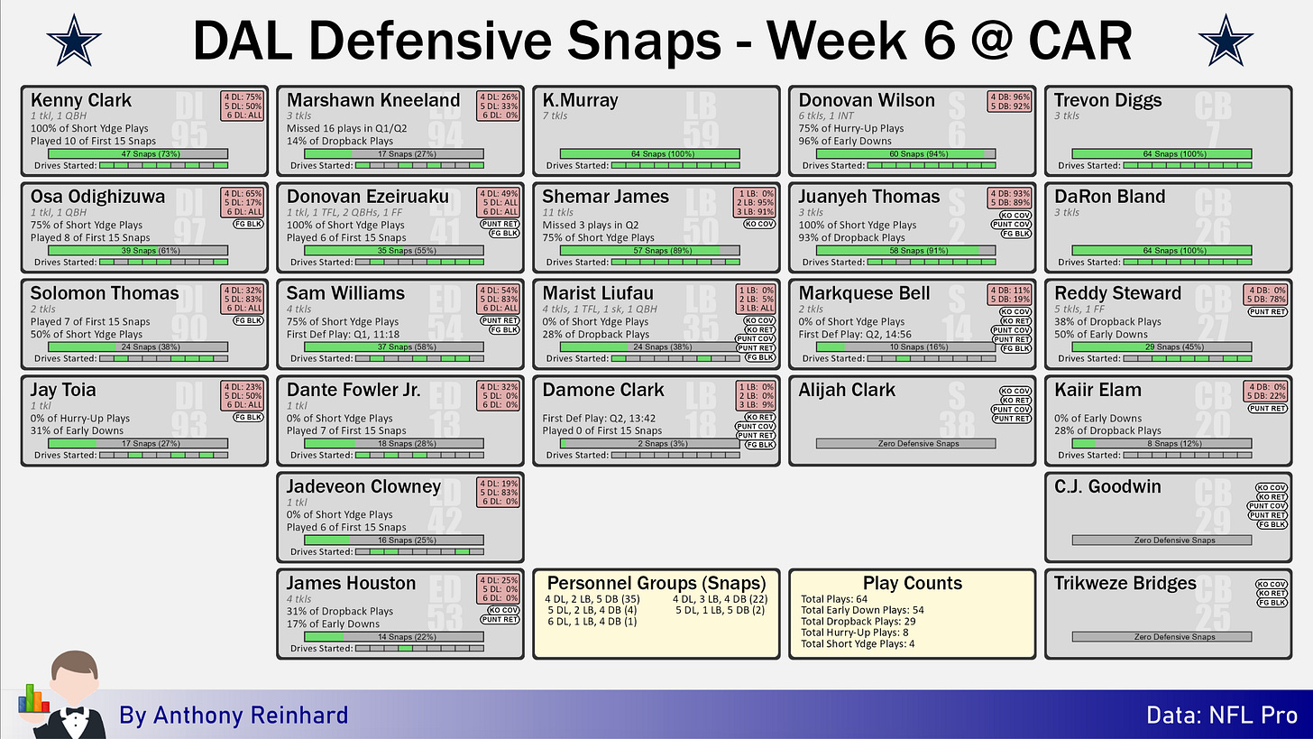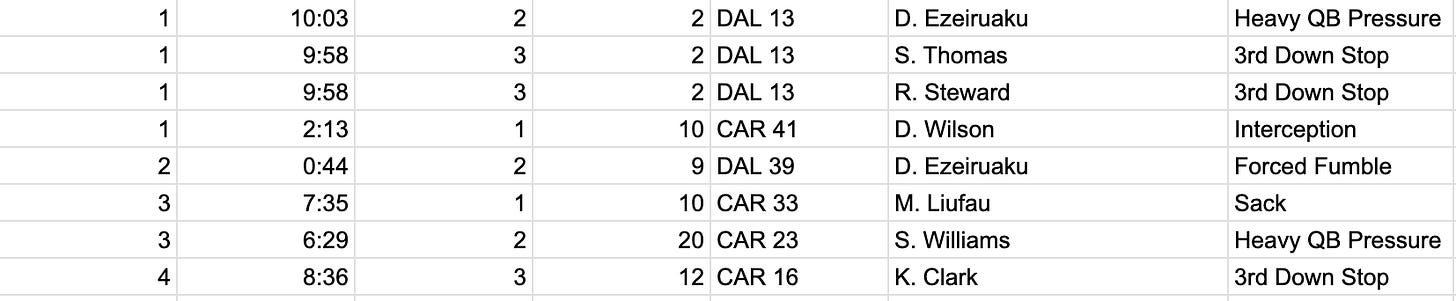 When I watched the game live, I was amazed at how awful the first five defensive snaps were. We can call it game plan work from the Panthers or the Cowboys being ill-prepared to start the game, but these are the first five snaps right at noon.