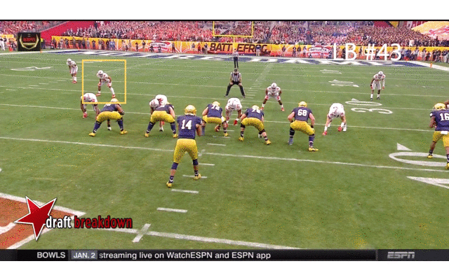 What I liked: What does Darron Lee do well? You could argue of the 4-3 linebackers he is the very best at blitzing off the edge and getting to the QB after disposing of a RB trying to pick him up. If you seek plays behind the line of scrimmage, his 27.5 tackles for loss and his 12 sacks in 2 years show you nearly 40 explosives and a rate that is fantastic. He also finds the ball pretty well through the traffic that an off-ball linebacker will deal with while also setting the edge on runs that go outside. He has a fine motor and will continue to battle until the whistle. He flies to the ball and rallies with his teammates as well as mirroring a player in the open field to shut down any escape routes. But, the thing that will likely get someone to gamble on him pretty high up the board will be his physical traits that include very good speed and long arms.